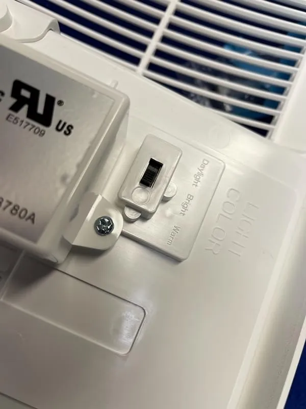 Another great aspect of this replacement cover is its convenience. The instructions provided on the back of the box were straightforward, and the installation video on Amazon was also helpful. I took the opportunity to clean my existing unit, which was filled with dust bunnies. Additionally, the color temperature switch, although not easily accessible when mounted, can be adjusted by plugging the cover into a wall socket first. This allows you to select the desired lighting option from the three available.
