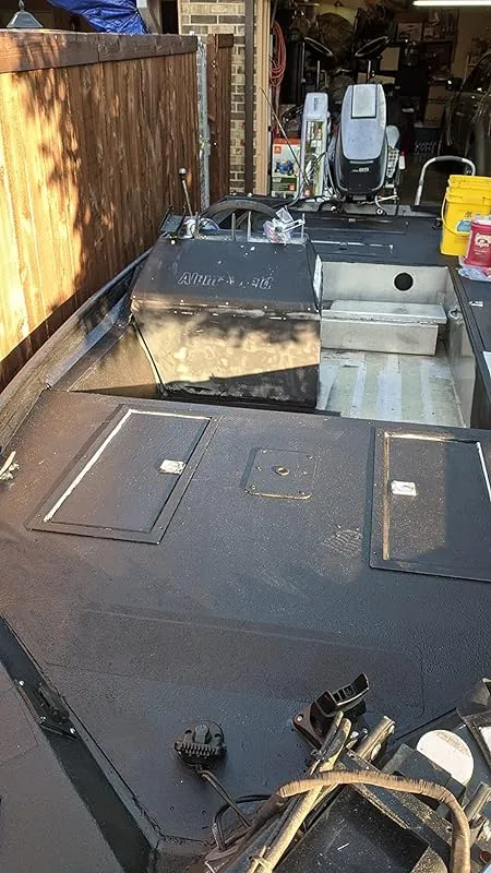 I also decided to apply this bed liner to my aluminum boat, which had become dangerous when wet due to fish goo and bait gunk. The application process was easy, and I found that applying it on a hotter day (98 degrees) yielded better results compared to a cooler day (78 degrees). It is important to take your time during the application process to avoid streaks.