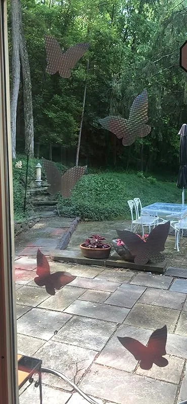 I feel compelled to write this review as these stickers have truly made a difference in saving the lives of many birds. Just a week ago, two birds hit my large windows, as shown in the attached pictures, and unfortunately, they died the next day due to internal injuries. My windows act like mirrors, reflecting the sky, as evident in the picture I took from outside. However, after applying these stickers (10 per window), the problem was resolved. I witnessed the effectiveness myself when, while I was watching the window from inside, a bird flew towards it like a bullet but quickly changed direction upon seeing the butterfly stickers. My wife also had a similar experience on another day. So far, these stickers have been working well and I highly recommend them for preventing bird collisions caused by window reflections. The stickers are of good quality and stick very well. I have not experienced any issues with them coming off, and while they may be difficult to remove, I personally have no intention of removing them anyway.