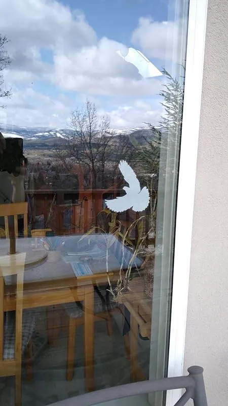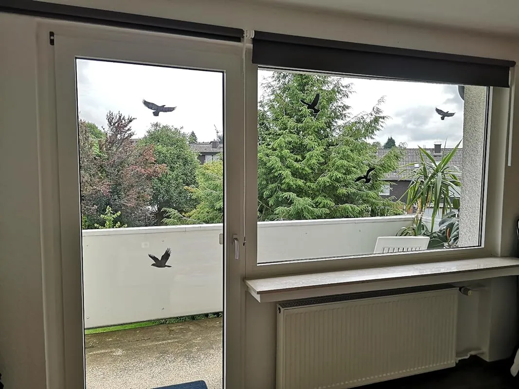 After experiencing multiple bird strikes and having to bury a dead bird, I decided to take action. Based on the positive reviews, the bird of prey motifs, and the large window area that needed to be covered, I chose this set. The shipping was fast and hassle-free. The installation was also easy. I cleaned and moistened the area to be covered with a window cloth. Then I peeled off the stickers and applied them. I used a card to remove any air bubbles and it was done. I hope that this will prevent further bird strikes.