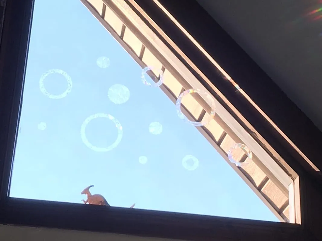 Based on my positive experience, I am purchasing a second set today to provide additional coverage on my large window. I want to ensure that there are no open areas for birds to mistakenly fly through. Additionally, I plan on placing a few decals on another window solely for the purpose of enjoying the rainbows they create.