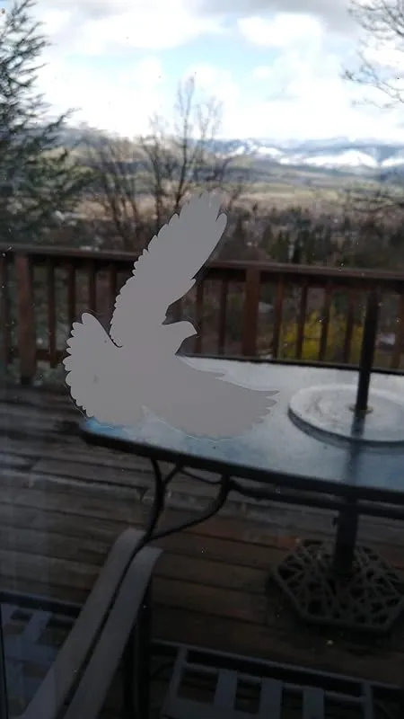 It is important to note that these decals may not completely eliminate bird strikes, as I have still had a few occurrences, but they have significantly reduced them. However, I did encounter an unexpected issue with a neighborhood hawk. The hawk started attacking the decals on my windows, which resulted in it getting stunned and sitting on the shelf outside my kitchen window. Due to my concern for the hawk's well-being, I decided to remove the decals.