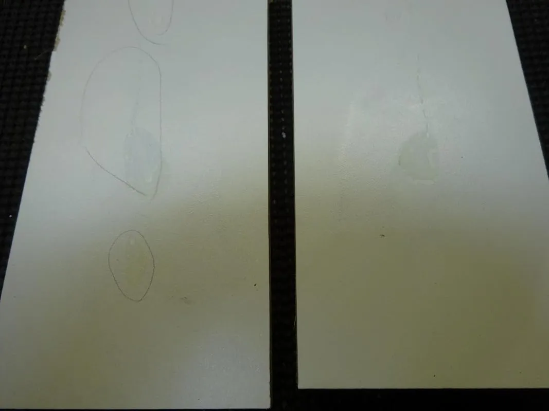 I tested this glue on various surfaces, including melamine covered particle board, oak plywood, and galvanized steel. I made sure to clean all the surfaces beforehand, but I did not roughen them up. The sheer strength of the glue was impressive. It held up well on the plywood, requiring a couple of strong hits to separate the wood pieces. The glue even absorbed into the wood, further reinforcing the bond. On the melamine, it popped apart with a good hit on the seam, leaving no damage to the surface.