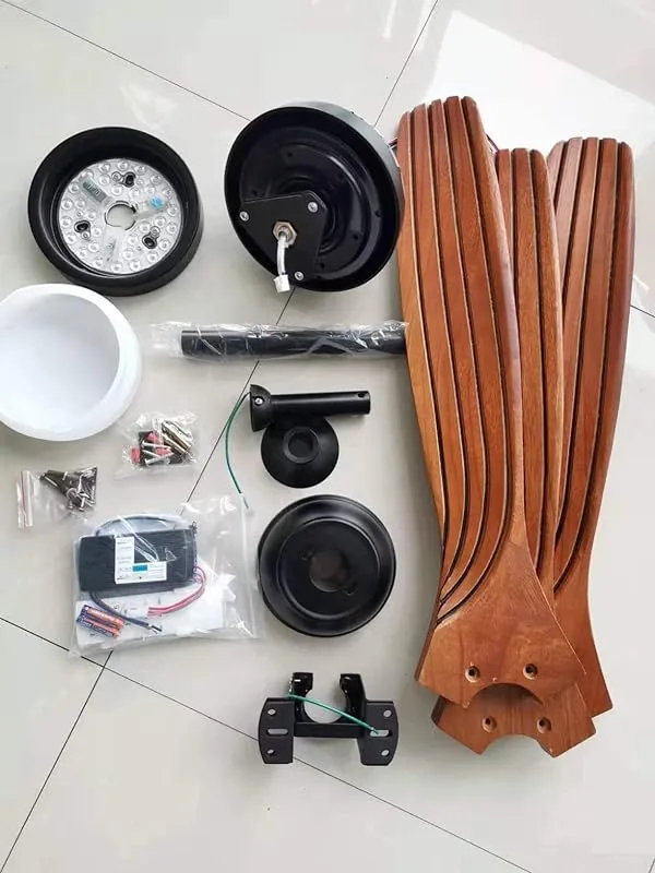 The remote control provided with the fan is a great addition. It allows for easy operation of the fan speed, light intensity, and even the color of the light (white or warm LED). The fan blades are made of solid, lightweight wood, giving them a sturdy feel, and the metal components of the fan, particularly the brushed nickel finish, add a touch of elegance to the overall design.