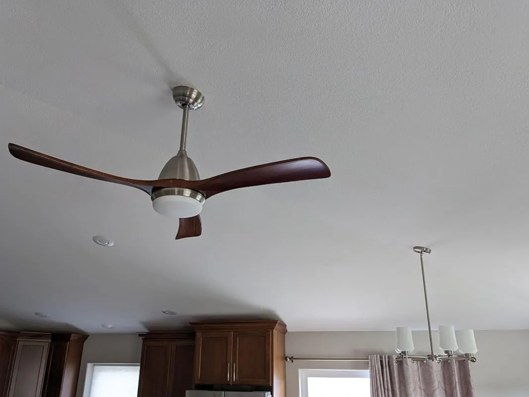 One of the standout features of this fan is the remote control. It offers a wide range of options, including the ability to dim the lights. This is a great addition, especially for those cozy evenings when you want to create a relaxing ambiance. I installed this fan in a room with lower ceilings, and although it doesn't have a flush mount option, it doesn't hang down too far from the ceiling.