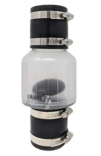 It's important to note that this check valve is designed for 1 1/4" piping but comes with universal rubber couplings that can accommodate both 1 1/4" and 1 1/2" PVC pipes. While this design allows for versatility, it's worth noting that if you use 1 1/2" PVC piping, you may not get the same level of flow as you would with a model specifically designed for that diameter.