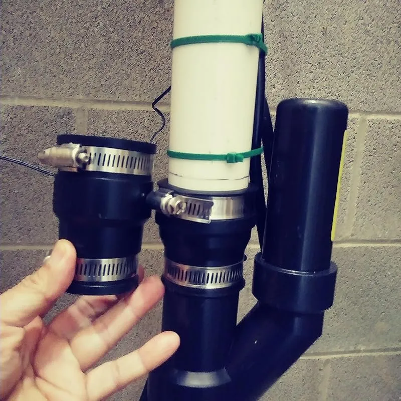 The valve comes with rubber unions and ring clamps that can be easily adjusted to fit different pipe sizes. In my case, I needed to adapt it to a 2-inch pipe, and it was a simple task. The rubber sleeves that were included with the valve worked perfectly, but they are also readily available in various sizes, allowing for further customization.