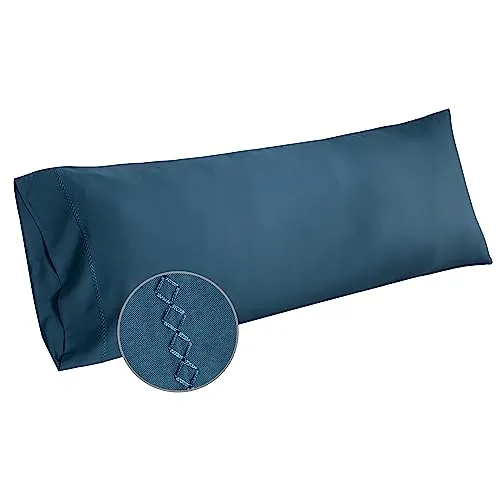 4. Coolmaxx Bamboo Embroidered Body Pillowcase, Navy Blue