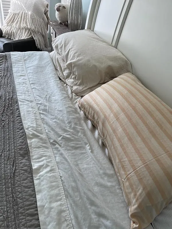 One aspect that really stood out to me is the attention to detail in the design. The fitted sheet has elastic all around, including elastic crosspieces at each corner, ensuring a secure fit on our thicker mattress. The top sheet is generously sized, making it easy to create a finished look by folding it over a blanket. The pillowcases also have a pillow fold over, keeping the ends looking neat and preventing any white fabric from peeking out.