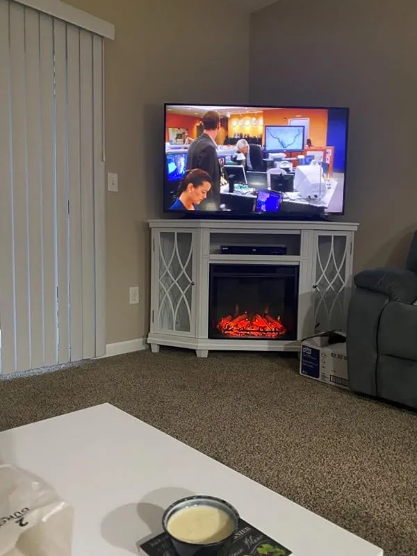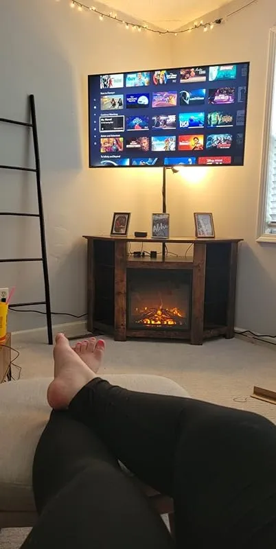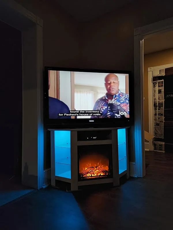 I recently purchased this corner fireplace/TV stand for my tiny home and I couldn't be happier. Not only does it fit perfectly in the corner, but it also adds a touch of beauty to the space. The design is well-done and the overall construction is top-notch.