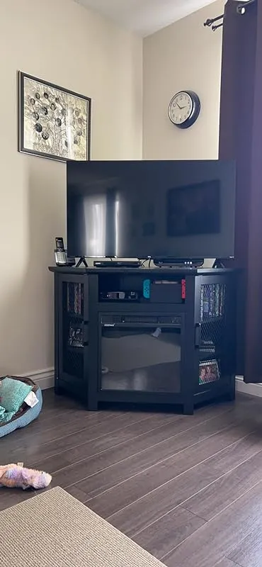 The corner fireplace TV stand is a well-built and sturdy piece of furniture that is easy to assemble. It can easily hold a 60" TV, making it the perfect choice for those looking for a corner unit that can accommodate a larger television. The assembly process is straightforward, just follow the provided directions, although it may take a couple of hours due to the size of the furniture.