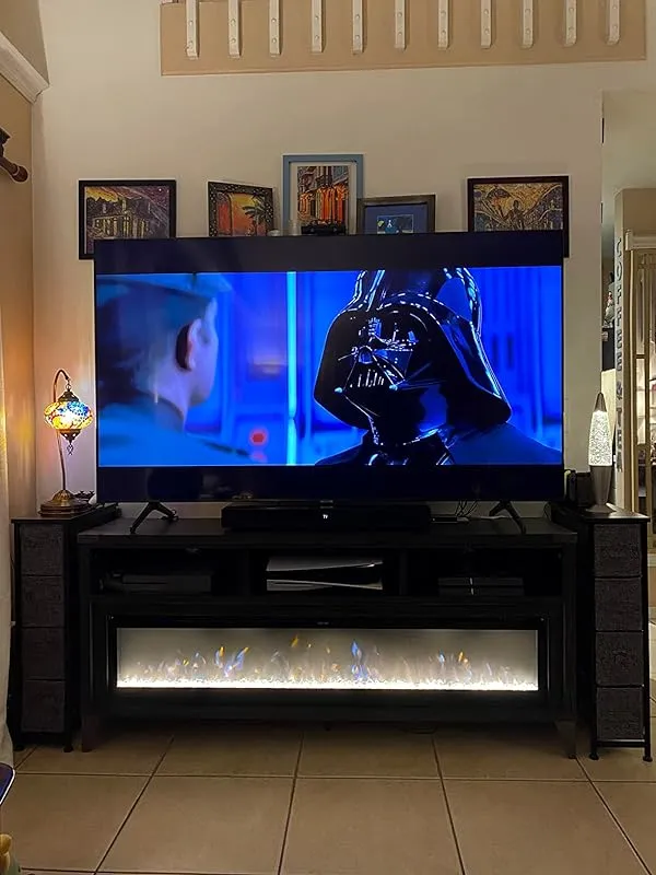 Initially, I was having trouble finding a tall fireplace TV stand with a long fireplace insert, but then I came across this particular model. Although the height was not exactly what I was looking for, I decided to give it a try because the fireplace insert seemed perfect. I am thrilled to say that this fireplace TV stand has exceeded my expectations. The colors are beautiful, the heat generated is just right, and the blower operates so quietly that it is barely noticeable. I highly recommend this product to anyone in search of a fireplace TV stand.
