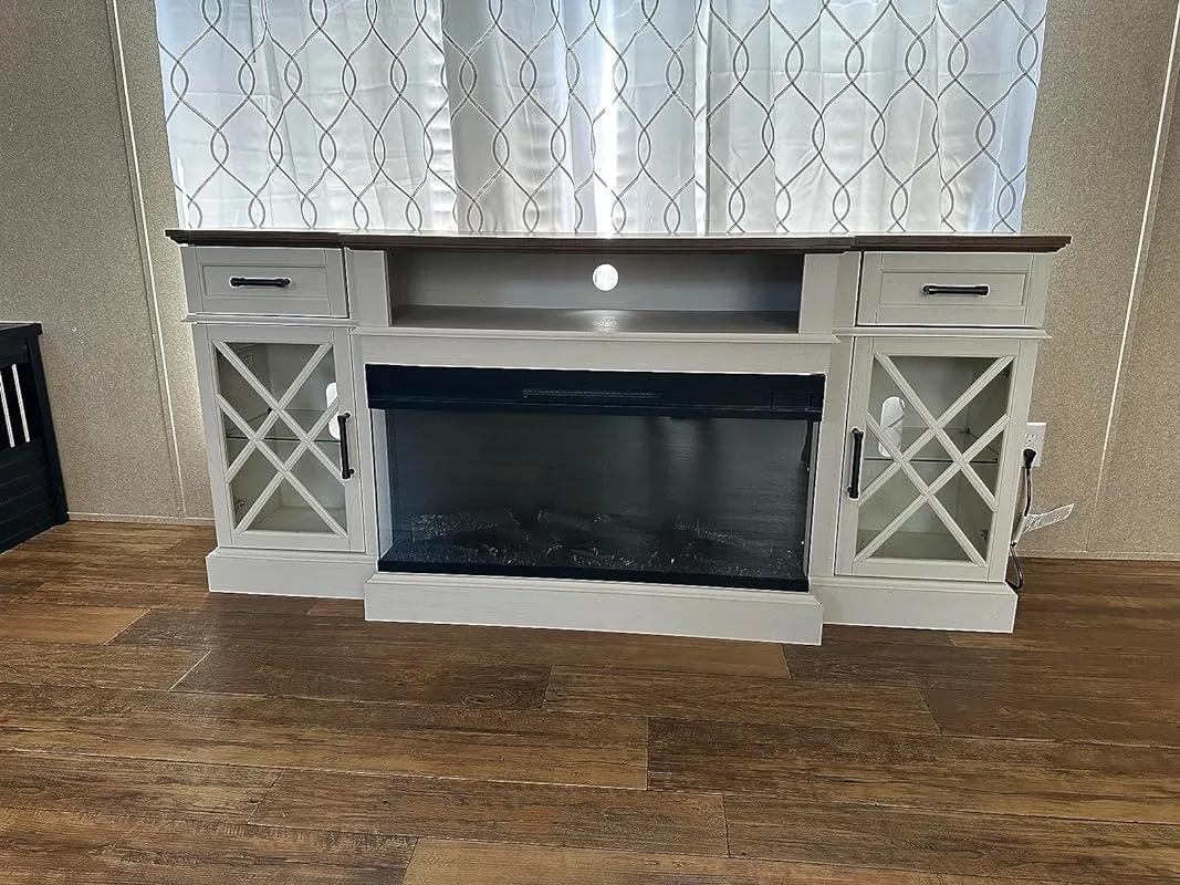 The product is ideal for adding warmth and ambiance to your living room while providing a stylish and functional TV stand.