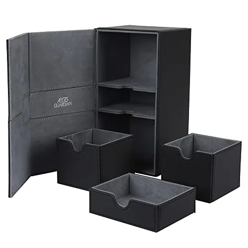 This deck box is designed with a modular storage system, allowing you to customize the compartments to fit your needs. It can accommodate double sleeved cards and has enough space for a commander deck.