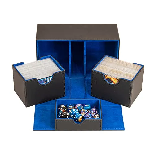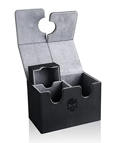 The box is made of durable material and features a secure closure mechanism to keep your cards safe. Additionally, it has a compartment at the bottom for storing accessories like dice and tokens. Another option is the Ultimate Guard Twin Flip'n'Tray Deck Case.
