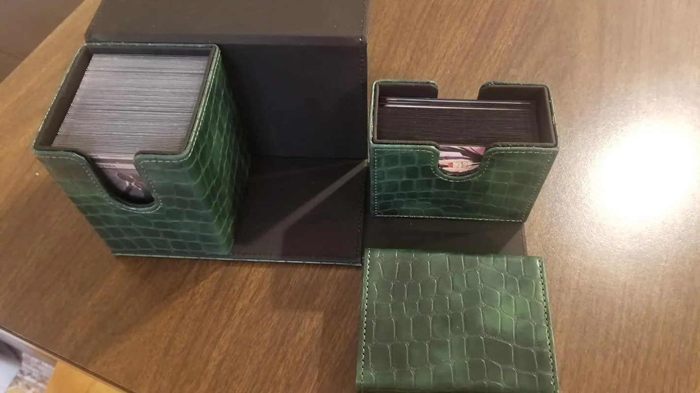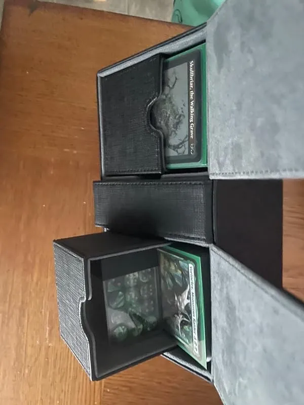 I recently purchased this deck box and I must say, it is a game-changer! As someone with a thick deck that requires double-sleeving for optimal protection, I have struggled to find a box that can accommodate its size. Many boxes on the market claim to be spacious enough, but they always fall short when put to the test. However, this box exceeded my expectations.