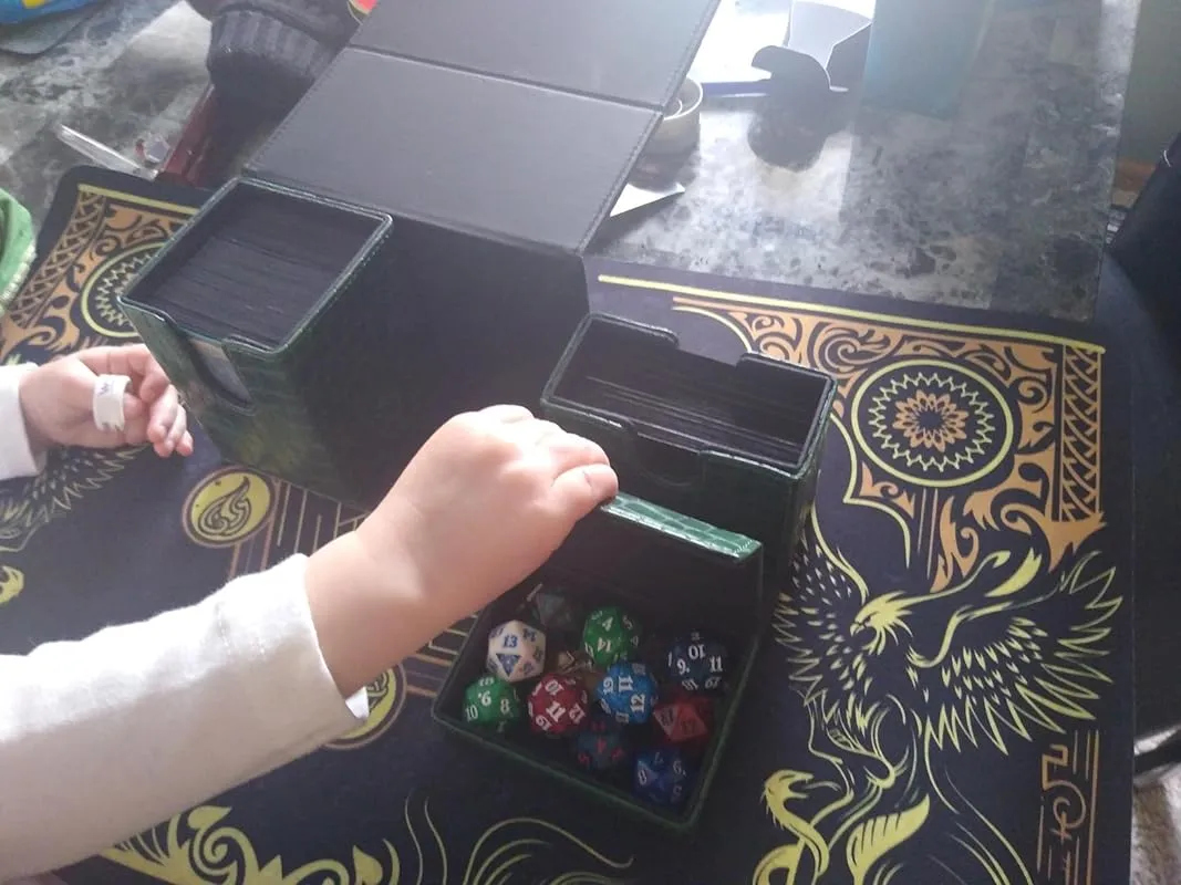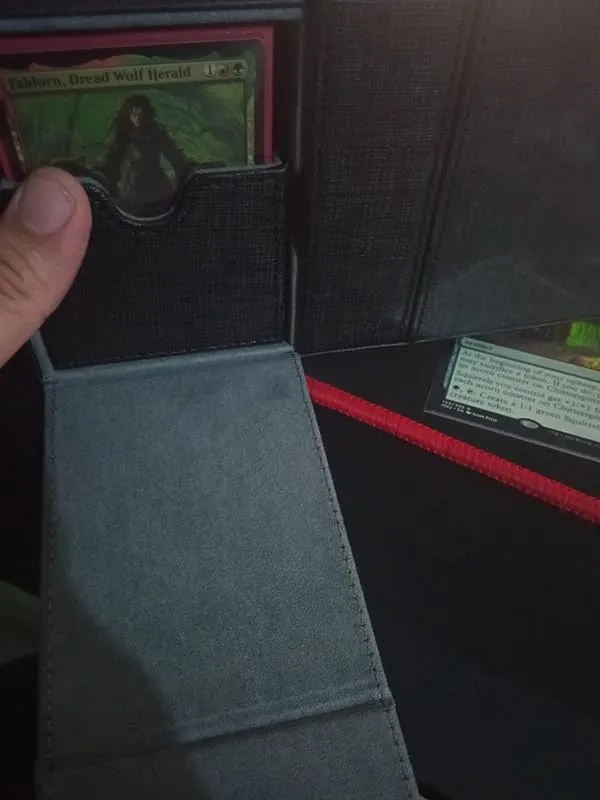 Mi serviva un porta mazzo per trasportare il mio commander, più una trentina di carte extra per convertire il suddetto da incolore a verde. Il porta mazzo è molto robusto e possiede un utile comparto ove inserire i dadi e, all'occorrenza, rimovibile per aggiungere altre carte. Il vano più grande può contenere più di 100 carte da sole, ma è sufficientemente grande per contenere un commander inserito nelle doppie sleeve.