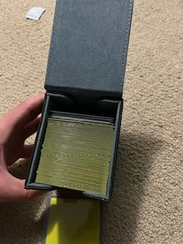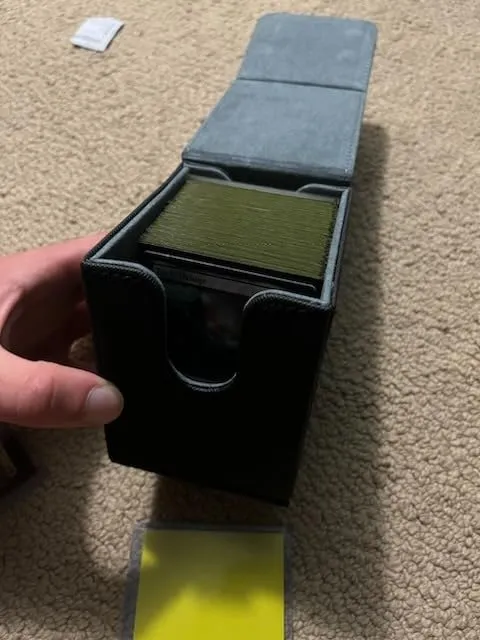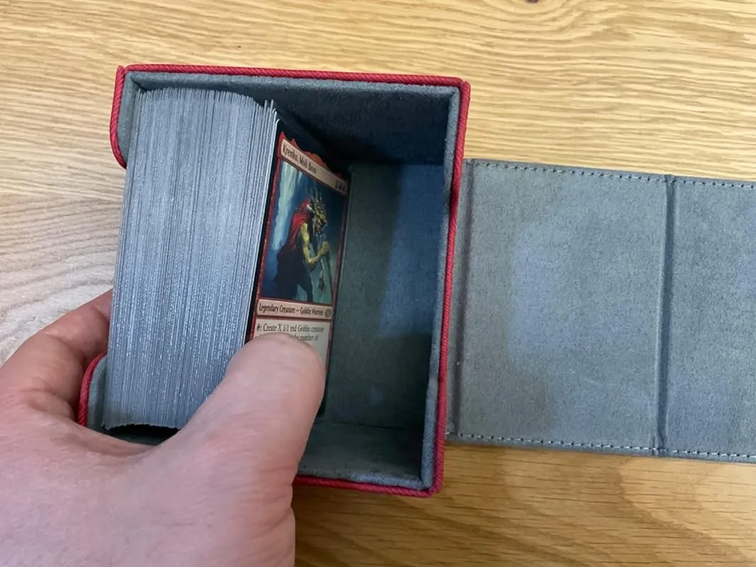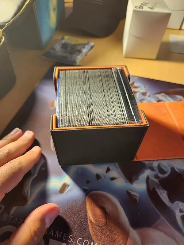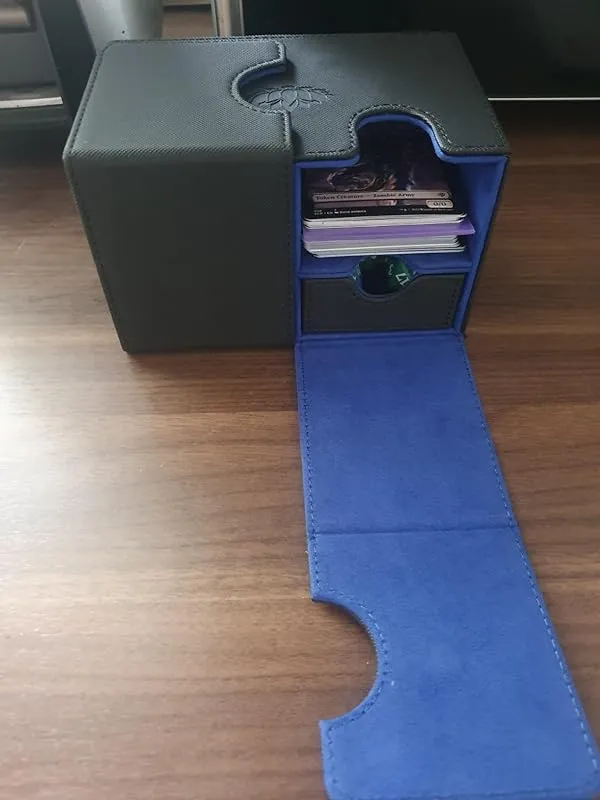 I recently purchased this card deck box and I must say, it is truly impressive. In terms of quality, it stands right alongside my Ultimate Guard Sidewinder, which is known for its durability. The box is spacious enough to comfortably fit my single sleeved commander deck, with even some extra room for additional tokens if needed. What really impressed me is the strength of the magnetic closure. Even when I turned the box upside down and shook it vigorously, the cards remained securely in place.