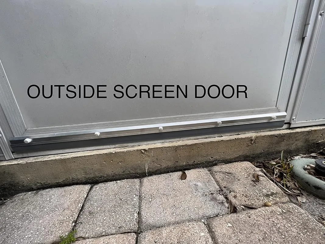 Installing this door sweep was a breeze. It is durable and sturdy, and I had to trim off the ends to fit my specific door size. The fact that it comes longer than any door allows for customization, which is a great feature. The included screws were a nice touch and made installation even easier. It has been three weeks since I installed it on my outdoor shed, and it's holding up perfectly. No issues whatsoever, and it effectively keeps dust and leaves from blowing into the shed.
