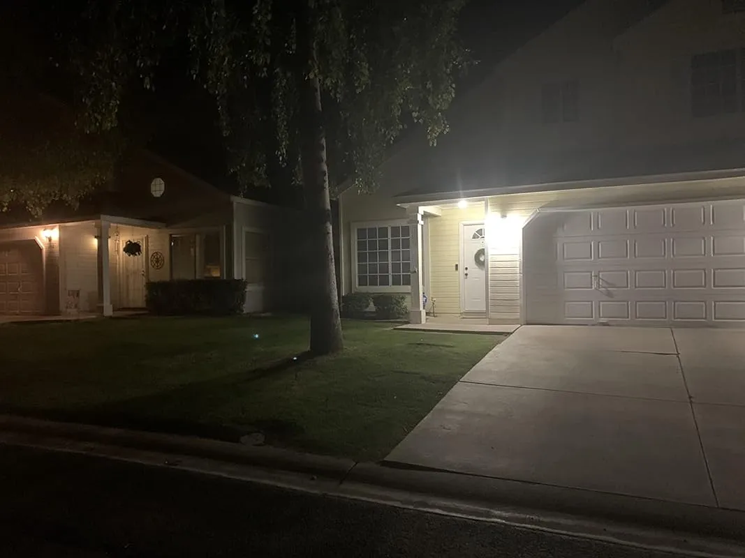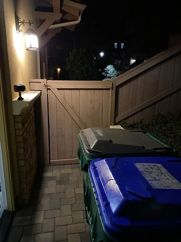 When I looked out the front window while watching TV, I was taken aback by how bright it was. As I walked out of the dark back room to the outside, the sudden brightness nearly blinded me. I had to shield my eyes with my arm just to pass by the back door. However, the garage looked fantastic and was well-lit, which was great for my security cameras.