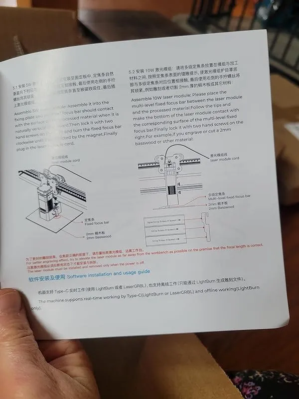 Despite only having a 10w laser power, this machine is quite impressive. It boasts a 60w power, which is significantly stronger compared to other brands. The assembly process was quick and easy, taking me about 20 minutes. I used the supplied USB stick to install the engraving software LightBurn on my Mac, and the user guide provided clear instructions on how to connect it to my computer without any issues. Everything works flawlessly.