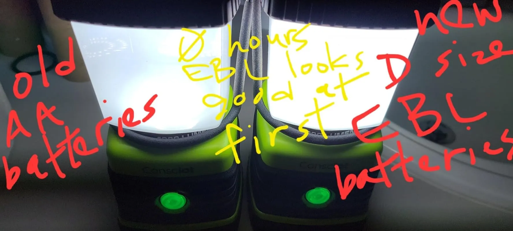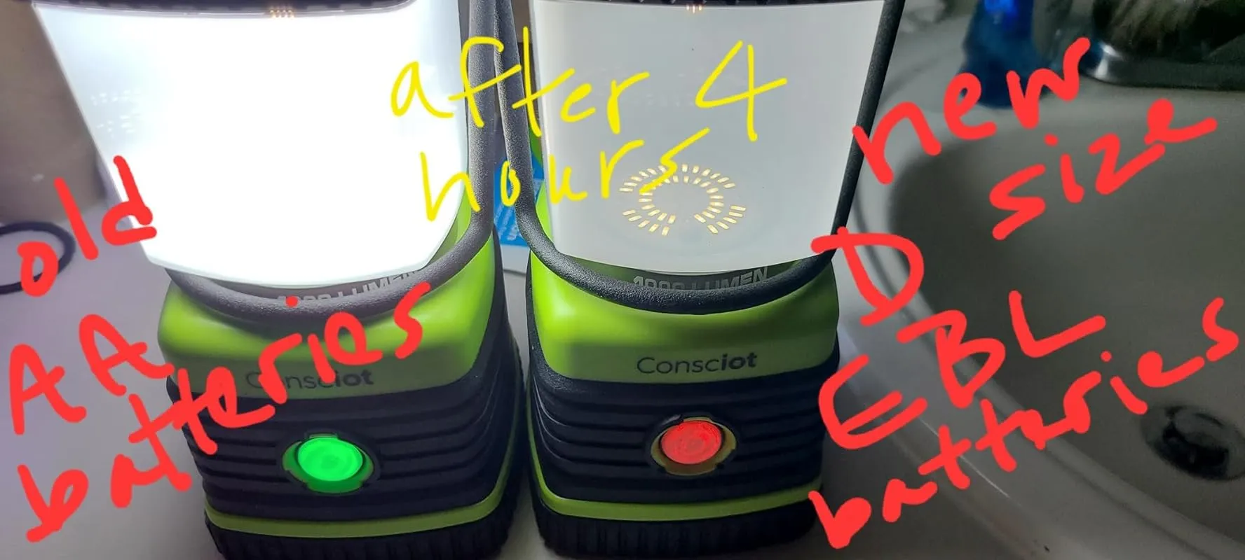 2. B082HFFH98 – Consciot Ultra Bright LED Camping Lantern: This lantern also advertises 1,000 lumens and is slightly brighter than my old 500 lumens lantern. I would estimate it to be around 750 lumens. Again, I have not tested its longevity and battery life yet.