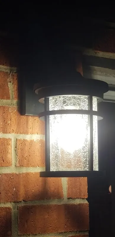 I am extremely satisfied with these outdoor column-top light bulbs with dusk-to-dawn sensors. They function exactly as expected, turning on at dusk and off at dawn, synchronizing perfectly with other fixtures. I was initially worried about the light output being weakened by the seeded glass, but I'm pleased to report that it is more than sufficient. The bulbs emit a pleasing amount of light at night without being overly glaring.