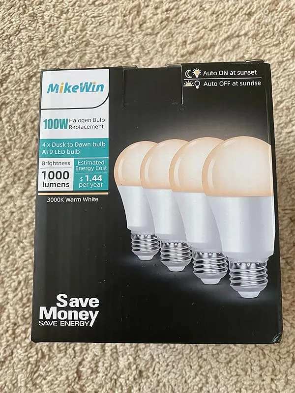 1. Mikewin Dusk-To-Dawn Outdoor Light Bulbs: Auto On/off, 4-Pack