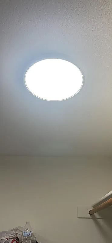 I recently purchased this round LED light fixture to replace an old shop-style light in my laundry room, and I must say it exceeded my expectations. The physical design is sleek and well-made, with a white plastic housing and frosted white diffuser. Despite its thin profile, the fixture emits an impressive amount of lumens.