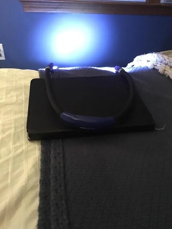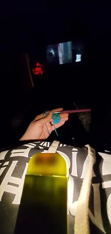 Rather than clipping it onto a book, I simply tuck it into my shirt collar and point it down at the crochet I am working on. This allows me to turn off the overhead light and enjoy binge-watching my shows while crocheting in the dark. The book light serves its purpose fabulously, just as I had hoped. Additionally, I have been pleasantly surprised by its impressive battery life. I have only had to charge it once so far, and it continues to perform well. When the light starts to dim, it serves as a reminder to recharge it.