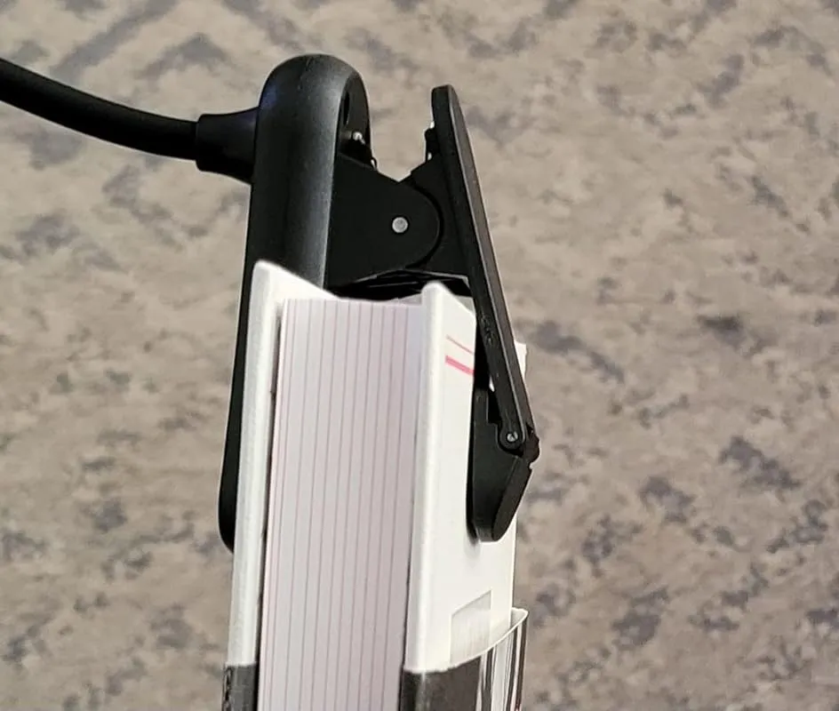 On a positive note, the clip opens wide, ensuring a secure grip, and I appreciate the split lamp availability. While I have yet to determine the battery life due to recently receiving it, I can confirm that it includes a charger cord, providing the convenience of recharging whenever necessary.