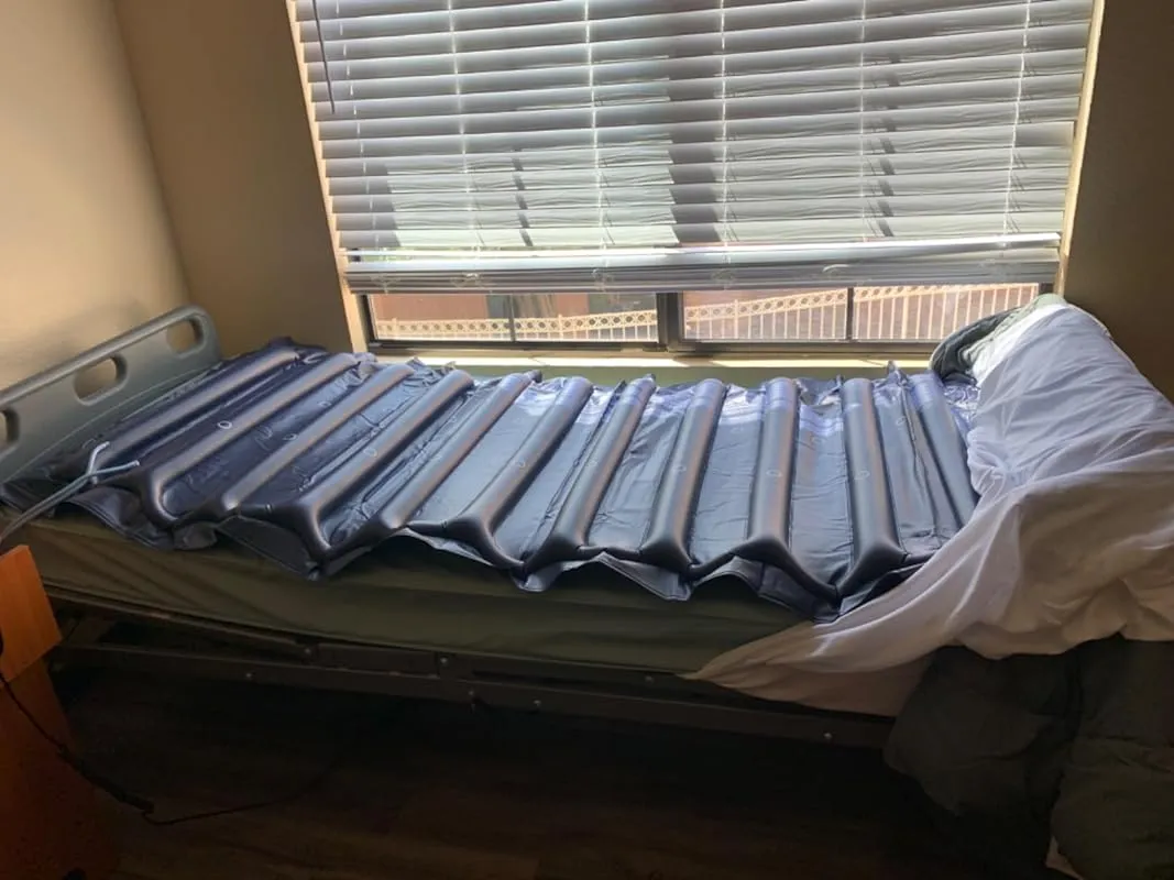 I wanted to be proactive for my 82-year-old grandma, who goes through cycles of not wanting to leave her bed for several days at a time. We found that the highest pressure setting on this mattress system was too firm for her, so we tried different pressures and she found the halfway setting to be the most comfortable. It's worth noting that the mattress can still move around under the bedding and the person using it, so it's important to monitor this to prevent the person from being pushed out of bed if they move around a lot.