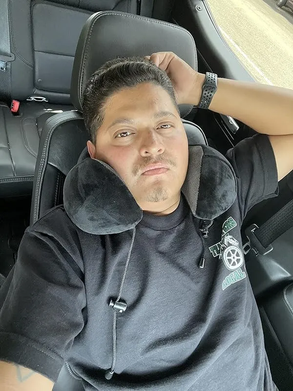 I recently purchased a travel neck pillow for a red-eye flight with my family, and I must say, it exceeded my expectations. This particular neck pillow falls perfectly into the Goldilocks zone – not too hard, not too soft, just right. I even tested it out by taking a nap in a recliner, and it provided excellent support. The only minor drawbacks are that the strap could be positioned a bit lower to prevent it from touching the face, and it tends to get warm after prolonged use. However, despite these shortcomings, I found this neck pillow to be the best at preventing my neck from discomfort. As an added bonus, it also comes with a mask and earplugs.