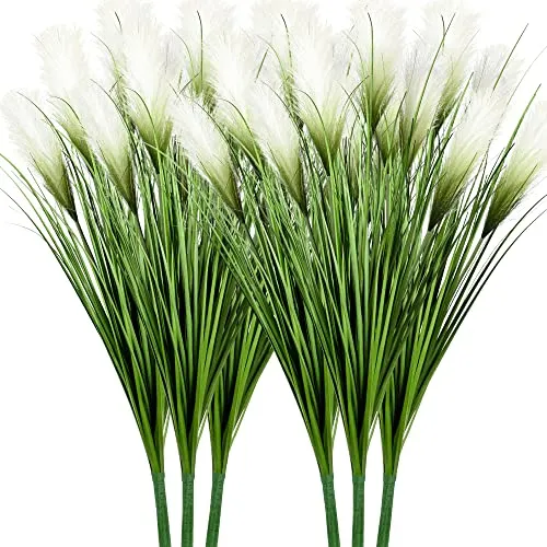 5. Vlorart 33" Artificial Onion Grass 6-Pack: White Bliss