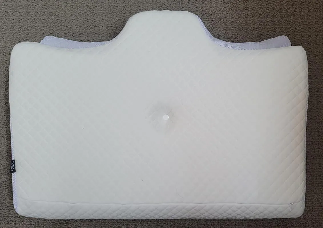 For me, the most comfortable position is when I end up on my back. The "Arc" on the pillow perfectly cradles my neck, while the "Hollow Center" ensures that my head is properly aligned. This position significantly reduces the pressure on my neck, resulting in a more comfortable sleep. While it doesn't completely eliminate my neck pain, it does alleviate it to a great extent. In fact, I recently woke up from a nap without a headache, which is rare for me. Normally, I experience headaches after just ten minutes of lying down. This improvement is a testament to the effectiveness of the HOMCA Cervical Pillow.