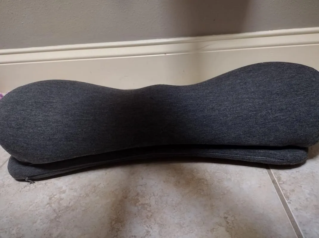 What sets this pillow apart is its design. It spans across the entire lower back and has a middle section that provides additional support for the spine. I didn't realize until now that this is what I had been missing all along. After using this pillow for a few days, I can confidently say that I am satisfied and will be sticking with it for the foreseeable future.