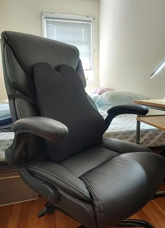 If you own a leather gaming chair that lacks proper back support, this lumbar support is a great addition. It is also beneficial if your chair's back is too far away, as it helps bridge the gap. Since using this product, I haven't experienced any back pain and I am determined to maintain it that way.