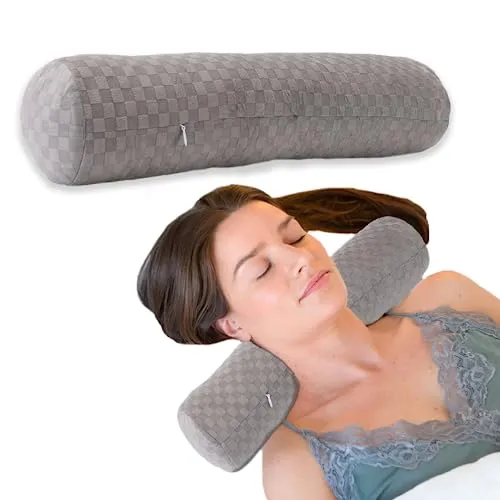 I have been suffering from a stiff and painful neck for quite some time now, and I am constantly on the lookout for products that can provide me with relief and comfort. This roll pillow has become a permanent fixture on my couch, and I use it while typing my reviews or watching TV. I particularly appreciate its neutral gray cover, as it blends in seamlessly with the rest of my couch's decor, almost resembling a small accent pillow.