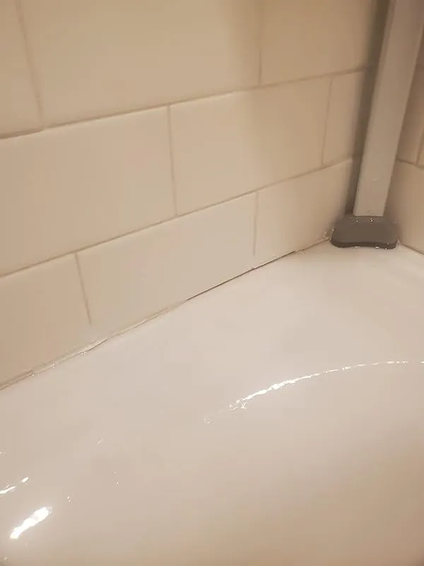One helpful tip is to watch a tutorial on YouTube that demonstrates a useful trick for achieving professional results. After applying the caulk and using your finger to even it out, spray the area with a non-ammonia foam window cleaner. This will help clean up any excess caulk, and you can simply let the foam cleaner dry on its own without the need for paper towels. The end result is a clean and professional-looking caulk line.