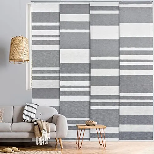 The product is ideal for covering sliding doors and large windows, providing semi-privacy with adjustable and trimmable fabric panels.