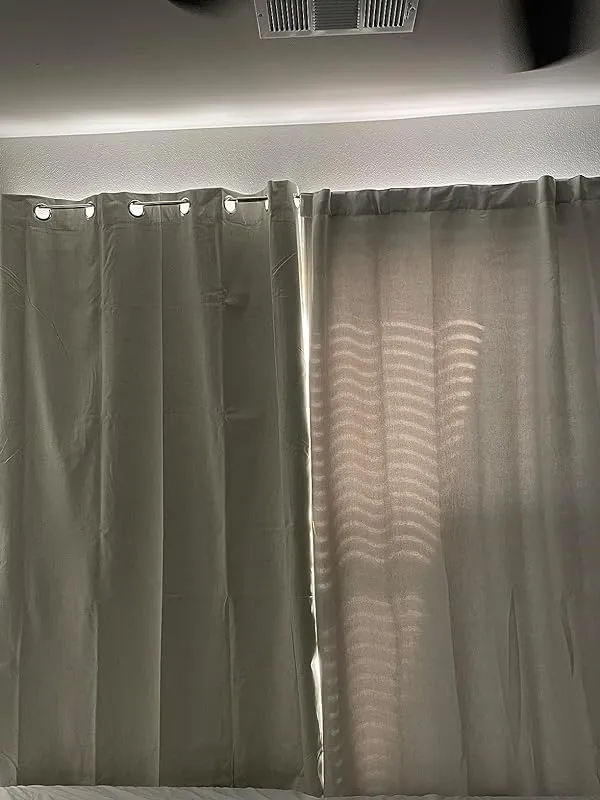 Not only do these curtains block light, but they also conceal a great deal of noise. I was pleasantly surprised by how thick and sturdy they are, providing an extra layer of soundproofing to my rooms. This is particularly important for me as my house gets a lot of natural light during the day and there's some glare from the night lights in my neighborhood, even with the blinds closed.