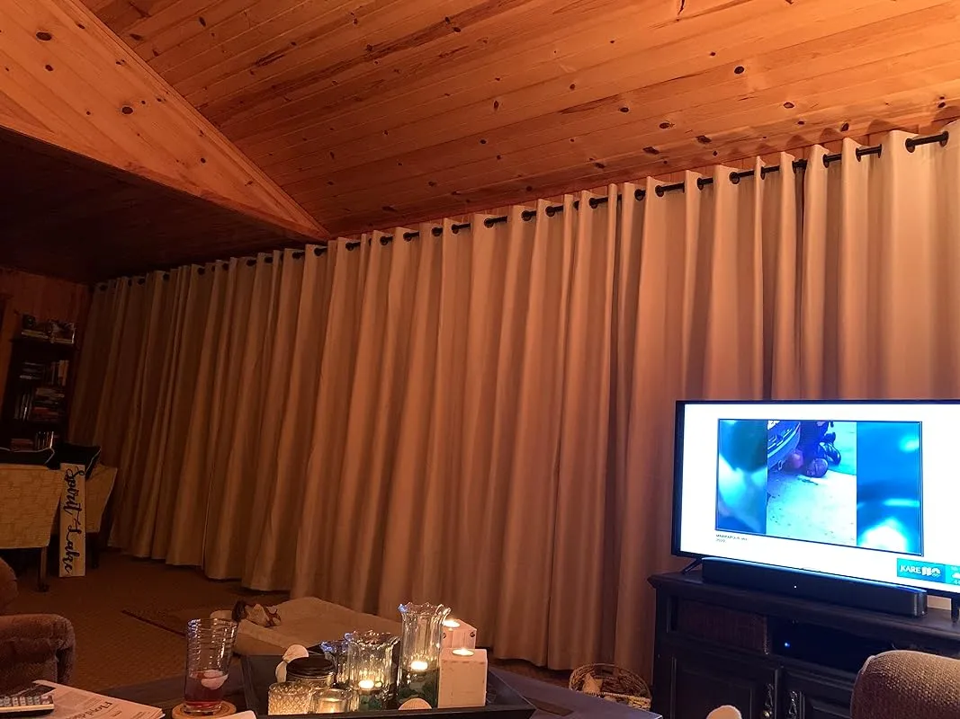 I am delighted with my purchase of these curtains. They were exactly what I was looking for to dress the windows in our cabin. The fabric has a lovely linen/burlap appearance, adding a touch of rustic charm. I appreciate that when the curtains are open, they stack neatly in a small 6 to 8-inch width per 100" panel. Closing them is a breeze, and the grommets feel sturdy and well-made. While these curtains are not blackout curtains, I actually prefer it that way as I enjoy a bit of natural light filtering through. I did need to use a steamer to remove the wrinkles upon arrival, but it worked like a charm. During the day, I took the extra step of training the curtains by manually pleating them evenly all the way to the bottom and securing them with a strip of paper bag and staple. This prevents the pleats from fanning out too much at the bottom. Overall, these curtains perfectly meet my criteria in terms of appearance, price, and value.