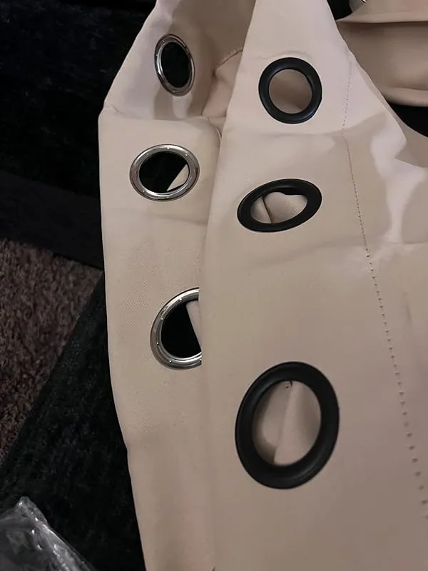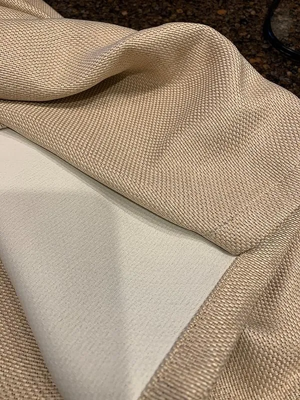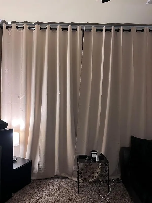 I couldn't be happier with my decision to buy these curtains! I chose the 100"X108" size in Natural color. The actual color is slightly darker in person than what was shown on the website, but it is still very beautiful and looks expensive. These curtains provide total blackout, and I didn't experience any unpleasant smell upon opening them, as some others have mentioned. The length of both curtains was consistent, measuring a true 108". I particularly love the 100" width, as I no longer need to hang two 50" panels on each side. This eliminates the small stream of light that used to enter where the curtains separated slightly. The way these curtains hang is just perfect. I simply hung them up and used a steamer, and they came out exactly as I had hoped.