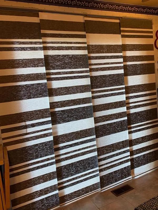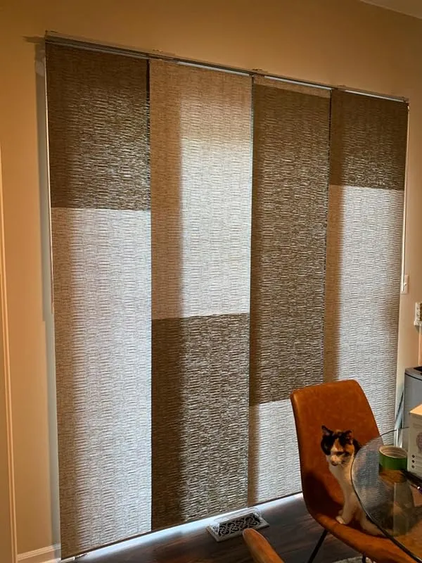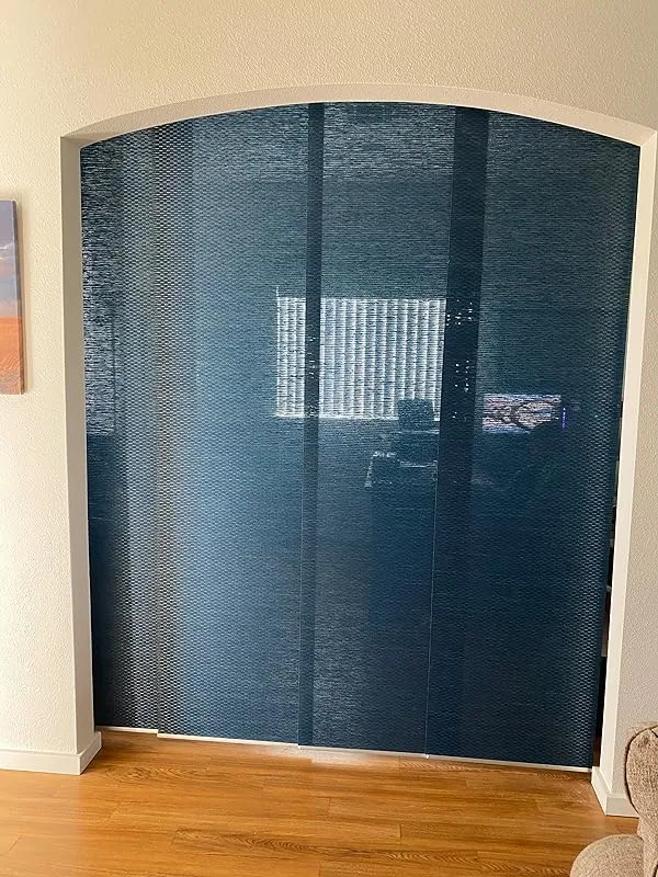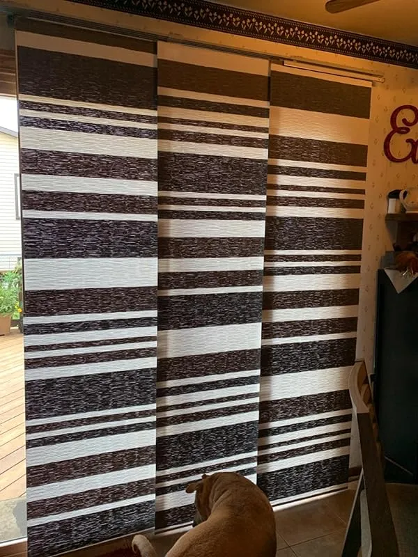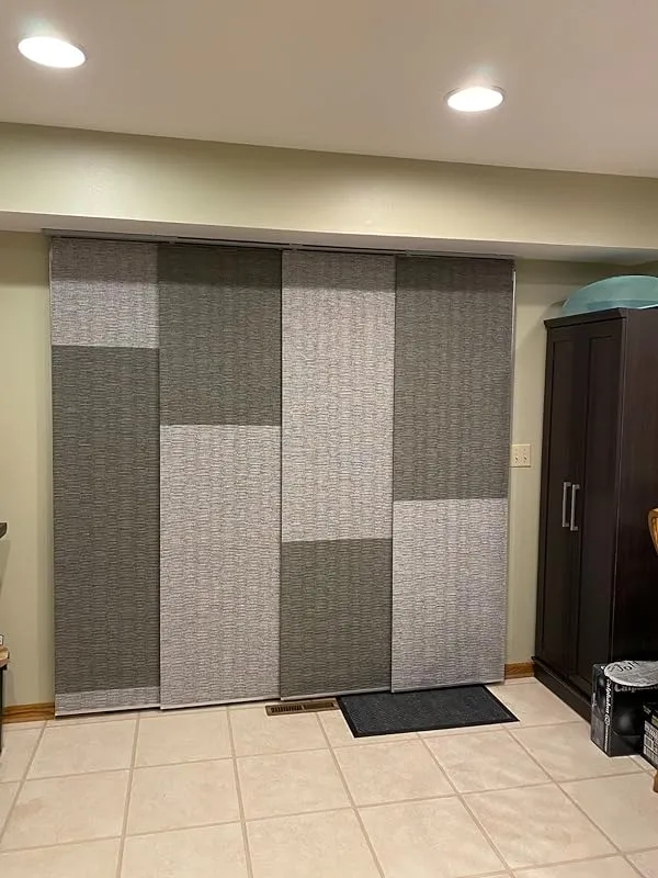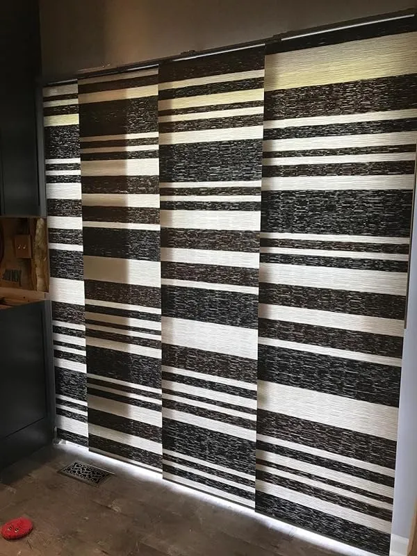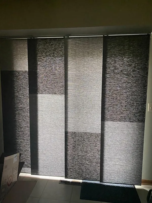 I am extremely pleased with the solution provided by these wide vertical blind panels for our sliding patio doors. Previously, we had the typical vertical slatted blinds which not only looked old and cheap but also swayed back and forth every time we opened or closed them. We were in search of a more modern and clean look, along with easy sliding functionality, and these panels fit the bill perfectly.