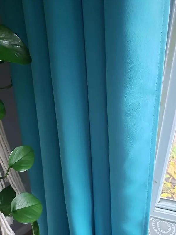 The aqua color of the curtains is gorgeous, but I have noticed that it tends to show dirt easily. I haven't washed them yet, but I hope they will remain beautiful for a long time. One thing to note is that the material is quite delicate, so it is important to keep sharp objects away from it to prevent any damage.