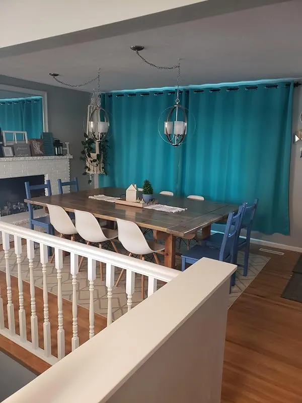 I recently purchased three sets of these drapes in the teal color for my den, which has a wall of west-facing windows. Living in a hot state, I needed thick curtains to block out the intense sun. Although these curtains are not total blackout, they do a great job of darkening and cooling the room. The thermal liner on the backing is a nice touch.