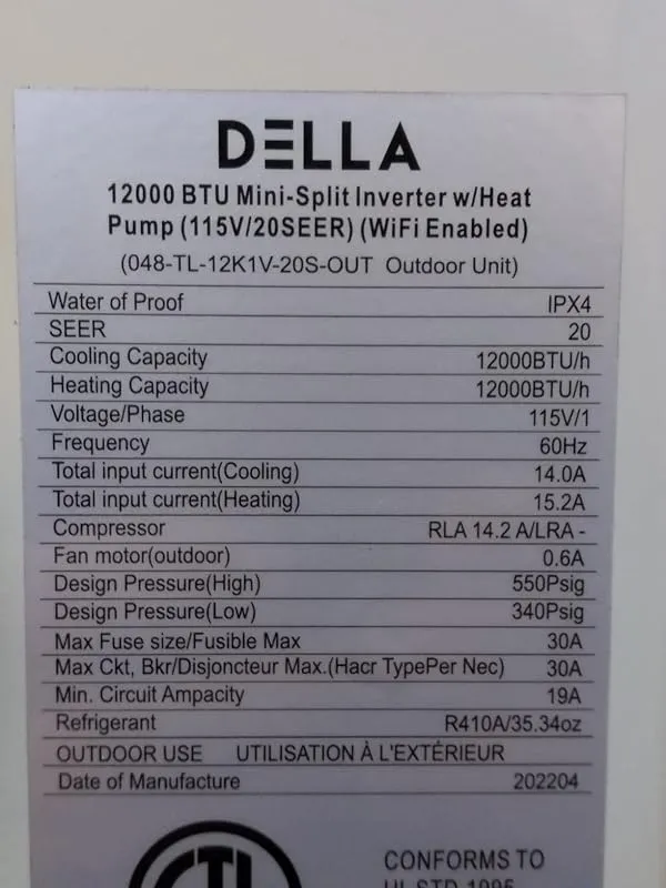 I decided to measure the voltage and current, and I was pleasantly surprised to find that this unit only pulls around 1750 watts at full load in 90-degree heat. This is a significant improvement compared to my previous 3.5-ton Goodman unit, which used to consume much more power. To cool our entire living space, I simply placed a box fan in the bedroom doorway, and it does the job perfectly. I couldn't be happier with the performance.