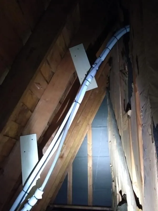 Lastly, I routed the condensate line in PVC inside the wall and left the connection accessible behind the evaporator in a bathroom closet. This will make it easier to clear or flush the condensate line with bleach if needed.