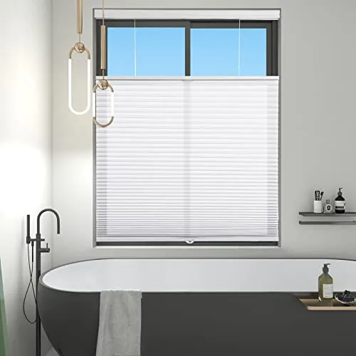 These blinds have quickly become a favorite of mine. The installation process is incredibly simple, requiring just two plastic brackets screwed into the top of the window frame. Once in place, the blinds snap into position effortlessly. The top and bottom bars allow for independent movement, enabling you to cover the top or bottom half of the window as desired, or both. The blinds are white and translucent, allowing for a pleasant amount of light to pass through while ensuring privacy. They are a versatile and enjoyable addition to any room, and I highly recommend them.