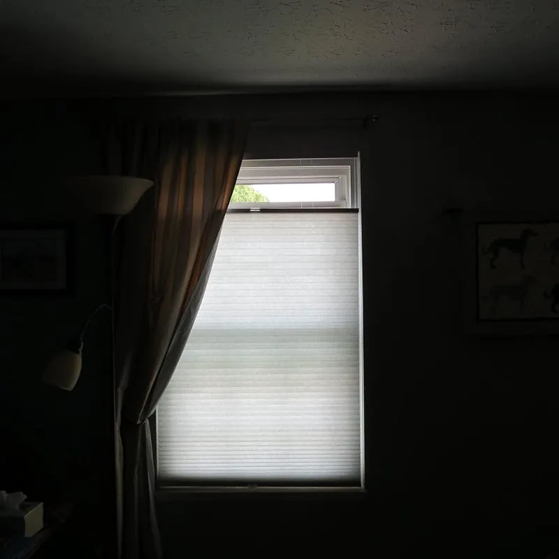 I am extremely satisfied with these blinds. They offer a high level of opacity, providing a blackout effect when the white curtains are closed. The convenience of being able to open them from both the top and bottom is a major plus. The installation process was quick and easy, requiring only four screws. The only minor drawback is that the connectors are made of plastic instead of metal, but considering the affordable price, this is to be expected. While the shade material may not be the most durable, it shouldn't be an issue as long as small children and pets cannot access it. I particularly appreciate the simple operation of these blinds – you can easily pull them up or down without any complications. The honeycomb design with foil fabric on the inside effectively blocks out light and may also provide insulation against heat or cold. I opted for an outside mount for my windows, and installing the blinds was a breeze. They have been successful in keeping most of the light out of my room, allowing me to sleep comfortably even during the day. The lift up and pull down mechanism works seamlessly and requires minimal effort. Once set, the blinds stay in place securely. Overall, these blackout blinds are an excellent choice.